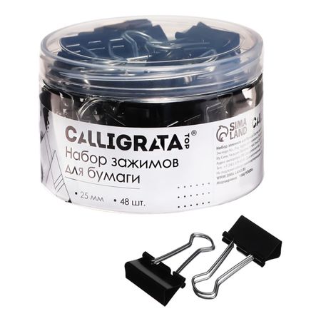 Набор зажимов для бумаг 25 мм, 48 штук, в пластиковой тубе, черные. Металлические зажимы для бумаг Calligrata используются для скрепления документов, фотографий без использования степлеров и скрепок, для временной фиксации листов, не повреждая их и надежно удерживая стопку бумаг. Канцелярские зажимы 25 мм из металла. Они являются необходимой офисной принадлежностью, используются в школах и дома <b> Максимальное количество скрепляемых листов: 100</b>