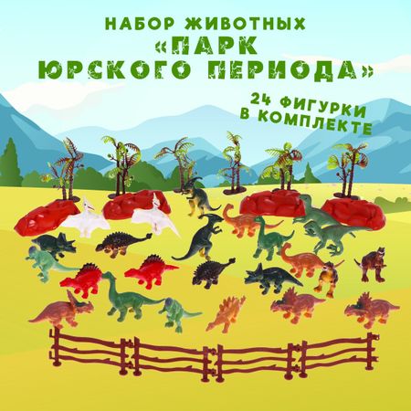Набор животных «Парк юрского периода». Набор животных «Парк юрского периода» — это увлекательный комплект, который перенесет ребенка в мир динозавров и откроет двери в доисторическую эпоху. В набор входят 24 фигурки динозавров, выполненные с ярким дизайном и высокой детализацией, что делает их отличным выбором для игр и изучения древнего мира. <strong> Особенности</strong> <ul> <li> Подходит для детей от 3 лет.</li> <li> В набор входят 24 фигурки динозавров, включая таких известных представителей как трицератопс, стегозавр, тираннозавр и многие другие.</li> <li> Яркие, детализированные фигурки, каждая с уникальными особенностями.</li> <li> В комплект входят элементы декора, такие как растения и ограждения, для создания захватывающих игровых сцен.</li> <li> Изготовлены из безопасного и прочного пластика, что делает их идеальными для активных игр.</li> <li> Размер фигурок удобен для детских рук.</li> </ul> <strong> Игра и польза</strong> Фигурки динозавров развивают воображение, помогают ребенку узнать о мире древних животных и стимулируют креативность при создании различных игровых сценариев. Этот набор идеально подходит для сюжетно-ролевых игр, помогает развивать логическое мышление и мелкую моторику.