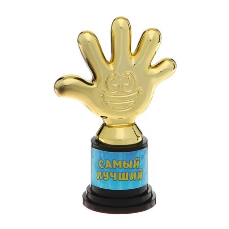 Наградная фигура «Самый лучший», пятерня, кубок, пластик, золото, 10.5 см. <b> Наградная фигура «Самый лучший», пятерня, кубок, пластик, золото, 10.5 см</b> Как же приятно, когда твои заслуги оценивают и признают! Даже небольшой сувенир порой помогает свернуть горы. Не откладывайте на завтра похвалу для близких и дорогих людей: им важно услышать слова поддержки сегодня. Наши эксклюзивные аксессуары помогут показать родным, как сильно вы их цените.