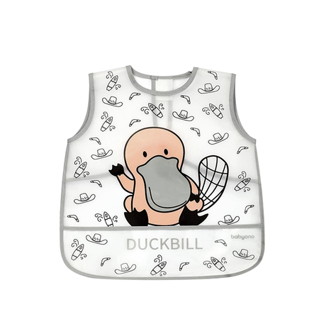 Нагрудник Бебионо детский пвх с кармашком (с 12 мес), серый меланж/прозрачный