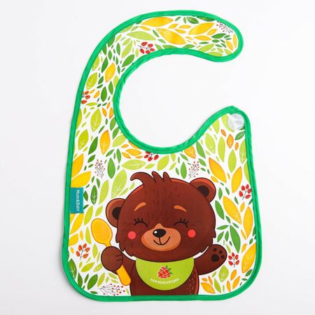 Нагрудник для кормления M&B «Мишка» непромокаемый на липучке, с карманом. Нагрудник не промокает и качественно защищает, поэтому одежда малыша не испачкается в процессе кормления. У слюнявчика есть специальный кормашек, который выворачивается на лицевую сторону на время приема пищи, в него попадают все крошки: чистым останется не только сам ребенок, но и место, где он кушает. Изделие выполнено из мягкого материала, имеет безопасные края. Приспособление фиксируется за шеей с помощью застежки. Товар изготовлен из материалов, не содержащего токсичных веществ. После использования мойте теплой мыльной водой. Нагрудник рекомендован для детей старше 4 месяцев.