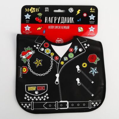Нагрудник для кормления M&B «Rock star» непромокаемый на липучке, с карманом. Нагрудник не промокает и качественно защищает, поэтому одежда малыша не испачкается в процессе кормления. У слюнявчика есть специальный кормашек, который выворачивается на лицевую сторону на время приема пищи, в него попадают все крошки: чистым останется не только сам ребенок, но и место, где он кушает. Изделие выполнено из мягкого материала, имеет закругленные края для безопасности малыша. Приспособление фиксируется за шеей с помощью застежки. Товар изготовлен из материалов, не содержащего токсичных веществ. После использования мойте теплой мыльной водой. Нагрудник рекомендован для детей старше 4 месяцев.