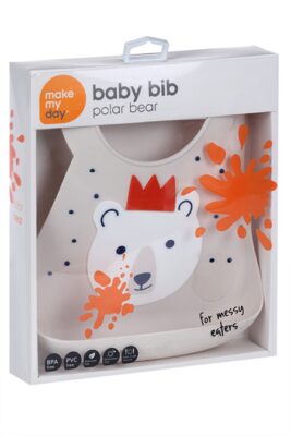 Нагрудник Мейк Май Дей с кармашком медвежонок в короне темно-бежевый белый