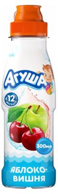 Детям с 12 месяцев Напиток Агуша Вода и сок Яблоко и вишня с 12 мес. 300 мл Напиток состоит из двух компонентов: сока и воды. Отлично подойдет для утоления жажды в жаркую погоду. Без добавления сахара. Объемная доля сока не менее 50%. Содержит сахара природного (естественного) происхождения. Без консервантов, красителей и ГМО.