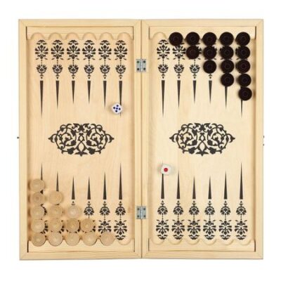 Нарды деревянные большие, настольная игра «Узор» 50×50 см, с шашками. Нарды "Узор", деревянная доска 50х50 см. Нарды — настольная игра для двух игроков на специальной доске, разделенной на две половины. Цель игры — бросая кости и передвигая фишки в соответствии с выпавшими очками, пройти фишками полный круг по доске, зайти ими в свой дом и выбросить их за доску раньше, чем это сделает противник. Есть две основные разновидности — длинные и короткие нарды.