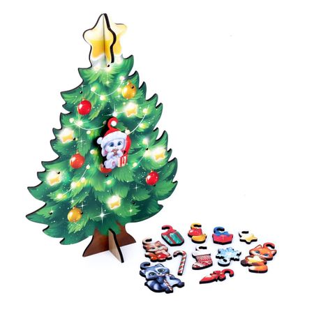 Настольная игра «Новый год! Ёлочка». Такая елочка станет не только увлекательной игрой для малыша, но и новогодним украшением вашего дома! Все элементы выполнены из дерева, а значит, они прочные и безопасные. <b> Как играть</b> <ul> <li> Соберите ствол и звездочку на елке.</li> <li> Вставьте колышки в отверстия на елке.</li> <li> А теперь включайте фантазию и украшайте елочку как вам нравится! На украшениях есть крючки, чтобы можно было подвесить декор на колышки.</li> </ul>
