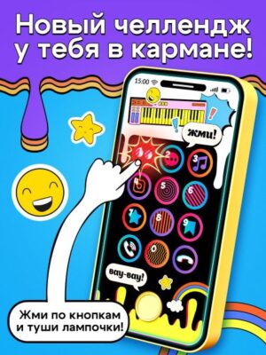 Настольная игра «Клик челлендж», 1 игрок, 5+. «Клик челлендж» — настольная игра для детей от 5 лет. Увлекательный смартфончик подготовил интересные задания, пройти которые сможет самый ловкий игрок. Бросьте вызов технологиям и покажите, кто самый внимательный. <b> Как играть</b> <ul> <li> Вставьте батарейки и включите телефон.</li> <li> Для начала игры нажмите на кнопку внизу экрана.</li> <li> На экране начнут загораться индикаторы.</li> <li> Задача игрока — как можно скорее потушить все лампочки, щелкая по ним.</li> </ul> Как только вы потушили все индикаторы, щелкните по кнопке внизу дисплея. <b> Особенности набора</b> <ul> <li> Для работы световых и звуковых эффектов требуются 3 батарейки типоразмера ААА 1,5 V. В комплект не входят.</li> <li> Чтобы включить или выключить телефон, зажмите кнопку внизу.</li> </ul> С увлекательной игрой ребенок весело и с пользой проведет время, развивая реакцию, фантазию и мелкую моторику.