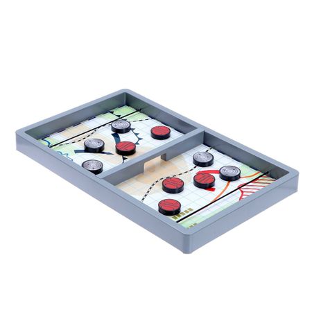 Настольная игра «Танковый бой». Настольная игра «Танковый бой» является классической версией популярной игры. Цель — быстро перегнать свои фишки-танки на сторону противника. <b> Как играть?</b> <ul> <li> Соревнуйтесь командами или вдвоем друг против друга.</li> <li> Разложите игровое поле.</li> <li> Каждый участник выбирает сторону поля и фишки одинакового цвета.</li> <li> Оба игрока могут расставить фишки в зеркальном отражении.</li> <li> Первый участник натягивает резинку, целясь в любую свою фишку так, чтобы она пролетела через отверстие на сторону противника.</li> <li> После первого удара ход передается к сопернику.</li> <li> Битва продолжается до тех пор, пока не победит один из участников.</li> </ul> Игра способствует развитию внимательности, логических способностей, математических и стратегических навыков.