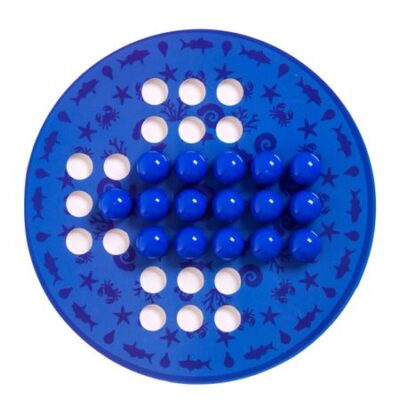 Настольная игра «Солитер», 1 игрок, 5+. Это всемирно известная игра-головоломка для одного игрока. Расставьте все фигурки по полю, оставив лишь одну ячейку по центру пустой. Цель игры — избавиться от всех шариков, «перепрыгивая» их как в шашках. Остаться должна лишь одна фигурка в центре поля. Игра рекомендована детям старше 6 лет.