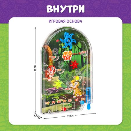Настольная игра «Улетный пинбол», ЛЕО И ТИГ. <em> Запускай шарики и набирай очки с любимыми героями!</em> Настольный пинбол «Лео и Тиг» — это динамичная игра на реакцию и внимание. Ребенок учится рассчитывать силу удара и следит за траекторией шариков, развивая ловкость и концентрацию. <b> Особенности</b> <ul> <li> Заправляйте шарики в правый отсек, оттягивайте рычаг и отпускайте — шарики летят по игровому полю. Чем точнее расчет, тем больше очков.</li> <li> Игра помогает улучшить координацию движений и скорость реакции. Ребенок сосредотачивается на полете шариков, учится предугадывать их путь.</li> <li> Не занимает много места — можно играть дома или взять с собой в поездку. Подходит для одного игрока, но можно устроить турнир на лучший результат.</li> <li> Крупные детали и прочный пластик. Нет мелких элементов, которые можно потерять или проглотить.</li> </ul> <b> Пинбол «Лео и Тиг»</b> — отличный подарок для активных детей, которые любят подвижные игры даже за столом.