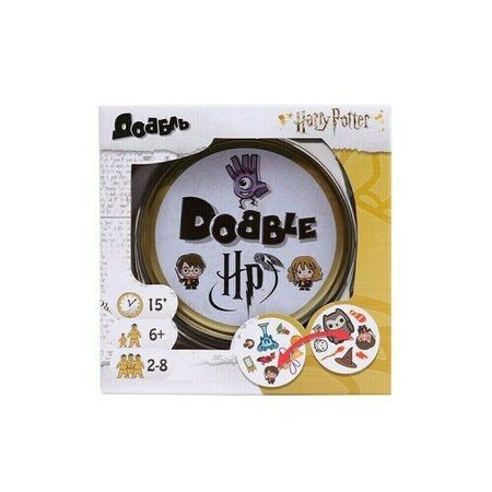 Доббль. Гарри Поттер — это быстрая весёлая игра, развивающая зрительное восприятие, внимательность и реакцию.Суть игры. На круглых картах есть различные изображения. Каждая карта уникальна, но на каждой паре карт имеется одна (и только одна) общая для этих карт картинка. Именно на поиске этого совпадения и построена настольная игра Доббль. Гарри ПоттерПравила предлагают 5 вариантов мини-игр в Доббль, в соответствии с которыми игрокам требуется собрать больше карт или, наоборот, быстрее всех от них избавиться, указав на одинаковые рисунки. Вот например один из вариантов игры: каждый из игроков берёт по одной карте, стопка карт кладётся в центре стола лицевой стороной вверх. Игроки одновременно переворачивают свои карты и сравнивают картинки на своей карте с картинками на верхней карте в центральной стопке. Игрок, который увидел совпадение, называет найденный символ и забирает карту себе. Теперь игроки сравнивают свои карты с новой верхней картой в центре стола. Победил тот, кто оказался самым быстрым и внимательным и смог собрать у себя больше всего карт. Поскольку все действуют одновременно, игра проходит очень азартно, динамично и весело!