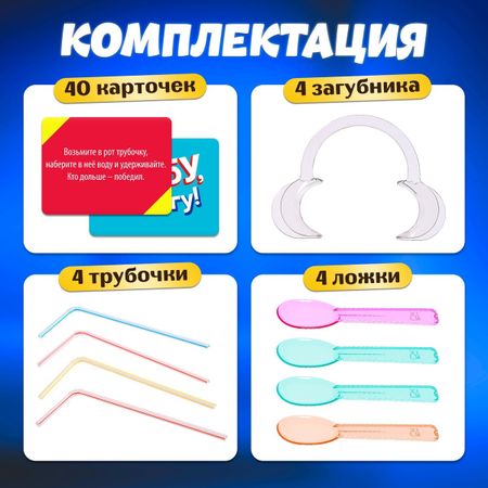 Настольная игра для детей на объяснение слов «Бу-бу, не могу» 4 загубника, 2-4 игрока, 10+. Настольная игра «Бу-бу, не могу» доставит всей компании много радости и смеха! Вам предстоит не только говорить смешные слова и выражения с загубником во рту, но и выполнять забавные действия! На каждой карточке представлены задания для участников. В течение 30 секунд их необходимо выполнить как можно больше. Каждому игроку выдается ложка, 2 пластиковых стаканчика, коктейльная трубочка и загубник. Обязательное условие: перед первым и каждым дальнейшим применением протирать спиртовым раствором и ополаскивать водой! Игра командная, рассчитана на 2–4 участников возрастом старше 10 лет. Она направлена на развитие внимания, усидчивости и воображения. Прекрасно подойдет для развлечения компании на любом празднике. <b> Играйте и веселитесь!</b>