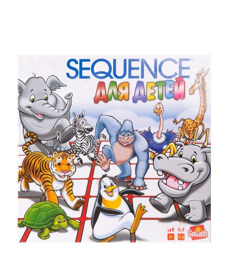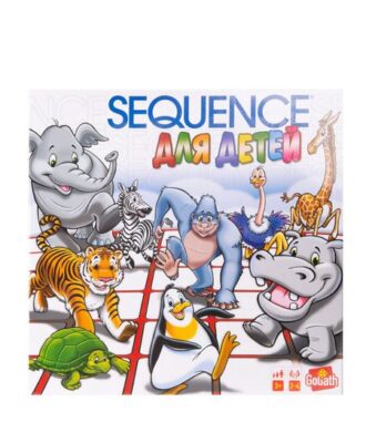 Sequence ДЛЯ ДЕТЕЙ — теперь официально в России! Стратегическая настольная игра Сиквенс ДЛЯ ДЕТЕЙ адаптирована для самых маленьких игроков и расчитана на детей от 3-х лет. Основное отличие детской версии от классической настолки Сиквенс — карты с изображением животных и упрощенные правила. В игре Sequence (англ. «последовательность») необходимо собрать последовательность фишек раньше, чем это сделает твой соперник. Выбирай любую из своих карт, и ставь фишку на ячейку поля, соответствующее карте. Места в 4-х углах поля действуют как джокеры и считаются фишкой вашего цвета. Достаточно собрать только 3 фишки и джокер заменит пятую. В колоде два типа волшебных карт: Единорог и Дракон. С их помощью можно поставить свою фишку в любое место на поле или убрать фишку соперника. Игра тренирует внимание, развивает логическое и стратегическое мышление. Количество игроков от 2 до 4 человек. Версия игры Sequence ДЛЯ ДЕТЕЙ включает в себя карты с изображением животных.