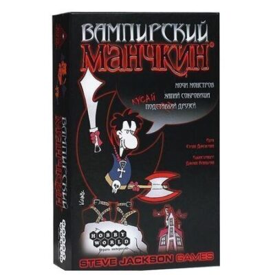 Кровавые сумерки сомкнулись над городом, как крылья огромного нетопыря… Волчий вой разносится по окрестностям, залитым светом полной луны… Неведомо откуда звучащее хихиканье и густой медовый перегар сводят людей с ума… Но тебя всё это не пугает. Ведь ты пришёл сюда рвать и метать!«Вампирский манчкин» — сверхъестественно готическое развлечение! Мрачная палитра игры состоит из оттенков красного и чёрного, главные герои — упыри, волколаки и подменыши, и лучше тебе не знать, сон чьего разума породил местных чудовищ.Готовься к битве! Точи серебряные ножики, тащи плащи, причёску поправь, тени помрачнее наведи, и вперёд — развоплощать баньши, усмирять адских гончих и выпускать настоящую кровь из выхухолака. Разрази всех гроб! Достигни 10-го уровня первым!Комплектация: 168 карт, 1 кубик, правила игры.