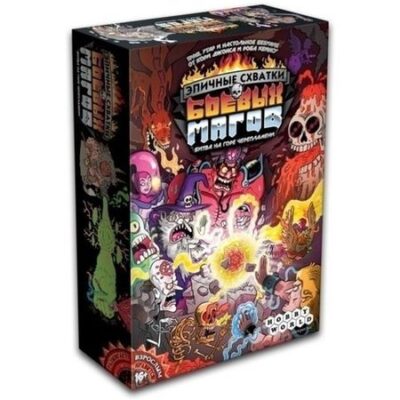 В славном королевстве Кровобойния живут самые брутальные боевые маги. И прямо сейчас, пока ты читаешь эти строки, они буквально потрошат друг друга за право называться самым нереально крутым колдуном во всем королевстве! Чего ты ждешь?! Присоединяйся к бойне турниру, пока не пропустил все самое интересное!Секрет успеха – в тройных заклинаниях. Это признак настоящей крутости и профессионализма. Дальше все зависит от твоих магических талантов и умения составлять безбашенные комбинации – твоя магия либо превратит врага в радиоактивный пепел, либо просто пощекочет его…Рискни, дерзни и всех победи! Ведь когда пыль уляжется, останется только один колдун. Он оглянется вокруг и приготовится к возмездию. Ведь дохлые колдуны полезут из своих могил, чтобы наказать обидчика и набраться сил! Зачем? Затем, что битвы в Кровобойнии не прекращаются никогда!Итак, на Горе Черепламени, прямо сейчас:Суперугарное веселье для 2–6 колдунов!Десятки десятков уникальных способов пустить врага в расход. Творимый тобой беспредел столь же безграничен, сколь твоя жажда разрушать!Десятки магических артефактов, чтобы добавить мощи заклинаниям! Наряжайся в зловещие шлепанцы и дубась врагов своей «пушкой-колотушкой»!Специально для унылых слабаков есть карты дохлых колдунов! Они позволяют насолить победителю и получить преимущество на следующую битву даже тем, кто сливается в первом бою и недотягивает до победы!Правила элементарны, а реиграбельность – бесконечна! Ты будешь раздавать волшебные пендели, пока у тебя не отрастёт эпичная колдунская бородища до пояса! Более 100 уникальных картинок от самого Ника Эдвардса, задающих упоротый настрой твоим эпическим битвам!