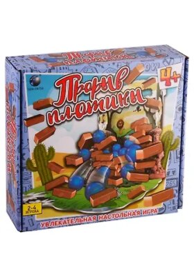 «Прорыв плотины» — увлекательная настольная игра, рассчитанная на 2-4 игроков. Участникам предстоит спасти животных от проливных дождей и построить плотину. В набор входят камни-кирпичики для плотины, фон Саванны и голубые шарики (для имитации дождя). Игрок может бросить дождь (мячик) через специальное верхнее отверстие или вытянуть кирпичик и поставить наверх плотины, увеличивая таким образом пробоину. В игре победит тот участник, который своими действиями спровоцирует прорыв плотины.