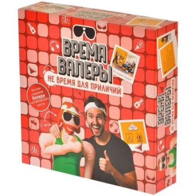 Не время для приличий!За пять лет жизни в России Валера узнал много новых слов и выражений. Теперь он знает, что «получить леща» – это не всегда про рыбу, а на вентилятор можно подкидывать не только конфетти. Валера готов играть с самой смелой совершеннолетней компанией! В этой игре – 336 новых слов, среди которых много двусмысленных и нецензурных. Они могут застать вас врасплох сразу после чего-нибудь невинного вроде пинг-понга или чревовещателя. Вы сами можете регулировать градус игры и загадывать двусмысленные слова через прямое или переносное значение. Вы знакомы с Валерой?»Время Валеры» – это хитовая игра для вечеринок, в которой надо объяснять слова и фразы жестами и с помощью надувного Валеры. Вместе вы попадаете в странные ситуации: перевоплощаетесь в разных людей, разыгрываете сцены из фильмов или известные поговорки. Валера готов стать инструментом, предметом, животным – используйте его как угодно, лишь бы игроки назвали правильный ответ! Победит тот, кто после четвёртого круга наберёт больше всех очков за отгаданные слова.Возьмите Валеру:На отвязную вечеринку. И не забудьте взять фотоаппарат – это стоит запечатлетьВ подарок весёлому другу с хорошим чувством юмораВ компанию любителей шарадНа мальчишник или девичник. Как подарок молодожёнам тоже годится!Комплектация Надувной Валера 168 карт с заданиями Бланки для подсчёта очков Правила игры Размер коробки: 258x65x258 мм