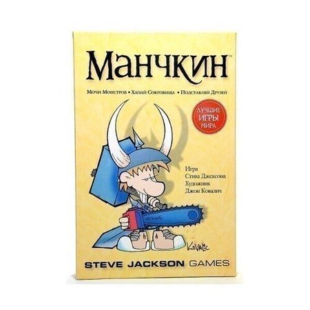 Игра «Манчкин» – локализация настольной карточной игры Munchkin. На русском языке игра, как ни старайся, приобретает новое звучание, но остаётся по-прежнему азартной, динамичной и злорадной. Ролевое зубоскальство по простым, но местами намеренно туманным правилам подвергает насмешкам благородных эльфов, мудрых магов, отважных воинов и мохноногих хафлингов.Клирики бьются с андедами, воры подрезают своих соперников в разгар боя, гигантские Кальмадзиллы и мерзкие Лицесосы стремятся отравить или отнять геройские жизни ваших манчкинов, но так, на расслабоне, без долгих речей и многочисленных бросков разногранных костей, принятых в D&D, GURPS и прочих равенлофтах.Так что же такое «Манчкин»?Итак, настольная игра «Манчкин» – это ролевая игра по форме, пародия по содержанию. Манчкины игроков ходят по подземелью, вытаскивают на свет божий тамошних чудовищных обитателей и либо раскаиваются в этом, либо получают за победу новые уровни и сокровища.Исход каждого подобного приключения (боя, короче) зависит от того, кто с чем на бой вышел. У игрока это уровень и бонусы/штрафы от шмоток, класса, расы и проклятий. У монстра это уровень плюс карты-усилители и разовые шмотки. Откуда шмотки у монстра? В вашем бою могут принять участие и завистливые соперники: они могут помогать монстру и ослаблять вас.Поэтому, хотя в «Манчкин» и можно играть вдвоём, наберите на матч побольше народу: на руках будет больше проклятий, усилителей и зелий, которыми так легко изменить баланс сил в бою в любую сторону, и бдительные завистники не дадут никому из вас выйти в единоличные лидеры гонки к 10-му победному уровню.А кому вы бы посоветовали этот настоящий хит?При создании эта настольная игра была направлена на молодёжную аудиторию, знакомую с ролевыми играми. Тем не менее, играть в настольную игру «Манчкин» можно в любом возрасте, кроме совсем уж нежного, в котором некоторые шутки Стива Джексона могут показаться чересчур солёными. А так фэнтези-приключение с мужественными/женственными героями, невероятными ситуациями, неописуемо жуткими невыразимыми монстрами и огромными сокровищницами понравится любому человеку с широким кругозором и здоровым чувством юмора.Манчкины всегда в пути.Отправились выламывать двери в реальном мире? Возьмите тренировочный полигон с собой! Настольная игра «Манчкин» просто создана для путешествий! Только подумайте: минимальные базовые правила, все уточнения и дополнения написаны на самих картах; нестандартный, уменьшенный размер карт; помимо самих карт вам понадобится только обычный кубик d6, но даже без него, при определённой смекалке, можно обойтись. Ну, и, конечно же, уморительный юмор и смешные картинки! «Манчкин» просто собрал в себе все качества для игры в дорогу. Партию можно сыграть в поезде, самолёте, в палатке, на даче, в залах ожидания и вообще везде, где только вам захочется, самое главное иметь подходящую компанию, которая не боится выбивать двери, сражаться по…