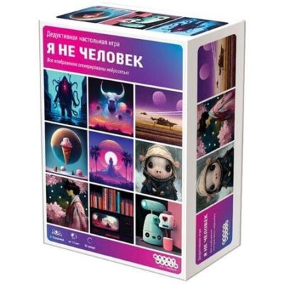 Нейросети научились всему, что раньше умели только люди: рисовать картины, писать тексты, сочинять музыку. Теперь человек должен доказать, что он не лишний в новом цифровом мире. Найдите среди картинок, созданных нейросетью, нужную – или блефуйте, чтобы сойти за своего в мире роботов!Комплектация162 карты9 жетонов8 карандашейБлокнотПравила игры Размер коробки: 137x190x64 ммРазмер карт: 56×87 ммРазмер карт: 101×101 мм