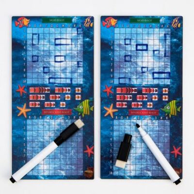 Настольная игра морской бой «На Дальних берегах», 2 стираемых маркера, 2 игровых поля. Морской бой — популярная и всеми любимая игра для взрослых и детей в новом удобном формате! В комплект входят два поля из многоразового ламинированного МДФ и два маркера, с помощью которых вы можете писать и стирать. <b> Как играть</b> Расставьте на поле боя корабли разного размера, стреляйте по полю врага, стараясь угадать координаты корабля противника. Результат боя по-прежнему зависит только от вас: побеждает игрок, который первым потопит чужой флот! <b> В наборе</b> <ul> <li> Игровое поле: 2 шт. Размер поля 20 х 10 см.</li> <li> Стираемый маркер: 2 шт.</li> </ul>