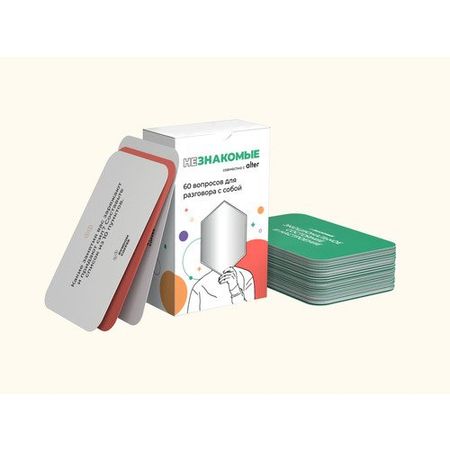Перед вами карточная игра для знакомства с собой, которую мы сделали совместно с сервисом подбора психологов Alter. Работа с психологом не ограничивается приемным кабинетом врача, а забота о своем ментальном здоровье — работой с психологом. Нужна и домашняя работа. Но с чего ее начать?Конечно, с честных ответов на поставленные самому себе вопросы. Этот набор карточек с откровенными вопросами о карьере, отношениях, самооценке и эмоциональном состоянии помогут разобраться в себе и послужат отправной точкой в поисках равновесия и гармонии с собой.ЧТО В КОМПЛЕКТЕ:Набор из 60 карточек с вопросами. Вопросы разбиты на 4 категории.Инструкция к игре.Коробка из дизайнерского картона с тактильно приятной ламинацией.Упаковочная коробка из гофрокартона с фирменной наклейкой и наполнителем для бережной транспортировки.