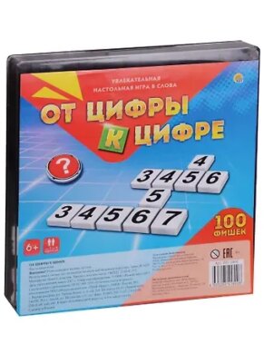 От цифры к цифре — интересная игра для всей семьи по типу кроссворда, только в данном случае нужно собирать не слова, а правильную последовательность цифр. Игра предназначена для 2-4 игроков в возрасте от 6 лет. Произведено в России.