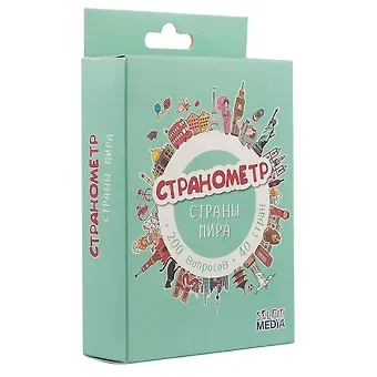 Настольная карточная игра “Странометр: Страны мира” позволит детям познакомиться с другими государствами, не покидая собственного дома. На одной стороне карт перечислены интересные факты о странах. А на другой стороне — вопросы, основанные на этих фактах. Победителем станет игрок, ответивший правильно на большее число вопросов.