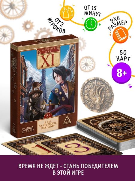 В этом захватывающем путешествии по другим мирам вы и ваши друзья попробуете себя в роли стражей времени, которым необходимо разделить часы между собой, не потеряв ни одной свободной минуты. Однако не все захотят делиться, поэтому будьте готовы к их хитроумным и коварным планам!Раскладывайте карты, выбирайте наиболее подходящую, заполняйте свой итоговый счёт времени определённым количеством очков и не забывайте сохранять ясность ума, ведь с каждым часом ставки растут всё больше…Состав:50 картправила игры