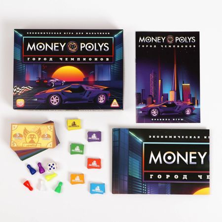 Настольная экономическая игра для мальчиков «MONEY POLYS. Город чемпионов», 240 купюр, 5+. <b> Экономическая игра для тех, кто любит азарт!</b> Приготовьтесь к захватывающему приключению: гонка на всей скорости, ветер в лицо… Чувствуете вкус победы? Примите участие в соревнованиях: покупайте собственность и получайте от нее хорошие дивиденды. С этой игрой вы не только научитесь вести счет деньгам, но и сможете открыть собственное дело в автоиндустрии! <b> Станьте чемпионами!</b> В начале игры выдается стартовый капитал, который нужно вложить в покупку собственности, связанной с автомобильным бизнесом. Каждое приобретение будет приносить вам прибыль. Бросайте кубик по очереди, перемещайте фишки по игровому полю и выстраивайте собственную стратегию этой экономической игры. <b> Развлекайтесь вместе с друзьями!</b> Покупайте собственность, платите аренду другим игрокам и участвуйте в аукционах. Вас ждет участие в тест-драйвах, автомагазины, тюнинг-центры и всевозможные развлечения! А победителем станет тот, у кого в конце будет больше денег! <b> Для кого эта игра?</b> <ul> <li> Для будущих бизнесменов.</li> <li> Для всех, кто любит считать миллионы.</li> <li> И для тех, кто впервые приобрел экономическую игру.</li> </ul> <b> Внутри вы найдете:</b> <ul> <li> игровое поле;</li> <li> правила игры;</li> <li> кубик;</li> <li> 7 фишек игроков;</li> <li> 175 карточек игроков;</li> <li> 240 игровых банкнот.</li> </ul> <b> Игра, которая научит считать деньги!</b> Дополнительно: У игрового поля есть разрез! Это сделано для того, чтобы оно не топорщилось и хорошо прилегало к поверхности стола во время игры.