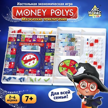 Станьте великим магом и получите как можно больше наград. Проиграет тот, у кого закончатся деньги и награды.Подготовка к игреКаждый участник игры выбирает себе фишку-самолёт любимого цвета и ставит её на клетку «Старт». Маленькие фишки того же цвета также нужно взять в свой запас.Перед началом игры каждому участнику выдаются денежные купюры:9 купюр номиналом 100;4 купюры номиналом 200;1 купюра номиналом 500.Важно остальные деньги положить в большие отсеки на игровом поле. 1 из игроков берёт на себя роль Волшебного Банкира и в процессе игры отвечает за деньги.Каждый игрок может выбрать отсек для хранения личного банка. Чтобы не перепутать банки игроков, можно положить маленькую фишку своего цвета в отсек. Как игратьКогда все фишки-самолёты на клетке «Старт» — игра начинается. 1-й игрок крутит стрелку рулетки № 1 и ходит на то количество полей, которое соответствует выпавшей цифре.Если фишка попала на следующие поля:«Награда». Игрок может приобрести её, заплатив указанную сумму. После нужно поставить свою маленькую фишку на приобретённую ячейку.«Заплати» или «получи». Заплатить за ту или иную услугу в Волшебный Банк и получить её там же.«Крути рулетку». Нужно вращать стрелку на рулетке № 2 и выполнить то, что она указала.«Вернись на клетку Старт». Нужно вернуться в начало игры.«Магический шкаф». Игроку крупно не повезло и нужно вращать рулетку № 1, но смотреть на результат внешнего поля. Если волшебство удалось то, игрок обходится штрафом в размере 30, а в свой следующий ход может ходить снова. Если волшебство не удалось, то игрок платит 30, но в свой следующий ход снова крутит рулетку.«Колесо фортуны». Игрок, чья фишка встала на этот сектор, приглашает любого действующего игрока проверить свои волшебные способности. Они по очереди крутят рулетку № 1. Чья цифра больше, тот и платит своему оппоненту 20.«Ходи дважды». В свой ход игрок может сделать 2 хода подряд.После того, как 1-й игрок сделал свой первый ход, в игру вступает следующий игрок. И действует по тем же правилам.Если фишка игрока остановилась на Награде, которую приобрёл другой игрок, то он должен заплатить ему ту сумму, которая указана на ячейке в графе Сумма.Каждый раз, как только игрок проходит через клетку «Старт» или возвращается на неё с клетки «Вернись», он получает из Волшебного Банка 200. Кроме 1-го хода.Начиная со 2-го круга игрок может увеличить значимость своей Награды. Если он повторно встал на клетку со своей наградой, то может внести доплату в общий Волшебный Банк и построить там дом. Для этого маленькую фишку нужно заменить на домик того же цвета. После этого другой игрок, вставший на клетку с домом, будет платить большую сумму.ПолезноНа 2-й стороне поля есть ячейки. Каждый игрок перед началом игры может выбрать для себя дорожку и дублировать маленькими фишками свои награды. Это даёт наглядное понимание приобретённых наград, а в конце игры это ускоряет процесс определения победителя.Вот так ситуацияКаждый игрок может увеличить ценность не более 5 своих наград. То есть поставить свои домики.Если у игрока закончились деньги, он может начать продавать свои награды. В общий Волшебный Банк — за половину рыночной цены. Другому игроку — по договорённости.Также можно брать займы: в общем Волшебном Банке — сумму не более половины стоимости своих наград. У других игроков — по дого