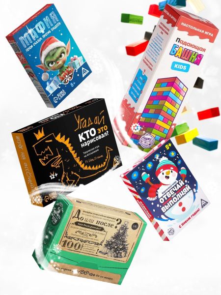 Настольные игры «Большой новогодний подарок», 8 игр. В Новый год все дети мечтают увидеть под елкой долгожданный подарок с особым трепетом ждут наступления чуда. Таким волшебным сюрпризом может стать наш "Большой Новогодний подарок!" Внутри собрано 8 увлекательных игр, каждая из которых подарит новогоднее настроение, атмосферу праздника и возможность стать участниками небольших соревнований на скорость, внимательность и объяснение слов. Скорее кладите этот подарок под елку и ждите новогодней ночи, чтобы устроить близким настоящий сюрприз! 8 игр в одной коробке!