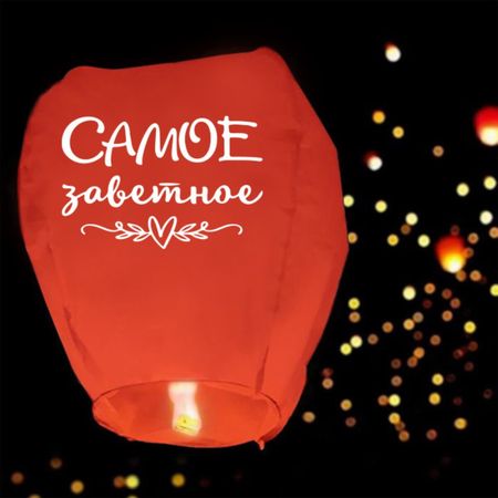 Небесный фонарик «Самое заветное», купол, красный. Фонарик желаний «Самое заветное» в форме купола — это необычный и яркий аксессуар для создания незабываемой атмосферы. Он станет прекрасным дополнением к любому праздничному мероприятию или уютному вечеру на свежем воздухе. <b> Особенности</b> <ul> <li> Размер фонарика: 36 × 36 см.</li> <li> Фонарик изготовлен из негорючей бумаги.</li> </ul> Идеально подходит для различных торжеств: Дней рождений, свадеб, юбилеев и других памятных событий. Запуск фонарика станет ярким моментом на любом празднике, а также может стать символичным жестом — выразить заветное желание, отправив его в небо. Фонарик желаний может использоваться как оригинальный подарок для близких и друзей, добавляя к моменту особую магию и эмоции. Такой презент не только удивит, но и подарит незабываемые впечатления.