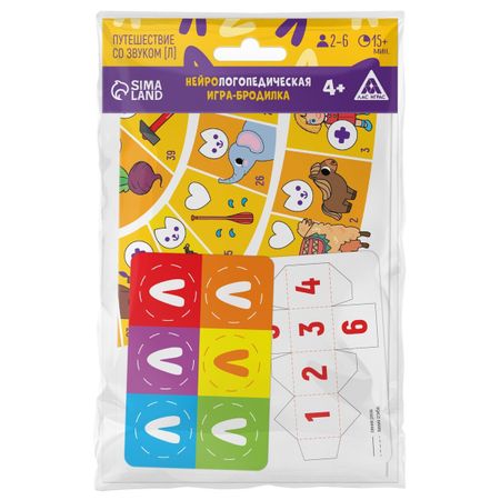 Нейрологопедическая игра-бродилка «Путешествие со звуком [Л]», 4+. <b> Автоматизируем звук [Л] в игровой форме</b> Перед вами не просто веселая игра-бродилка. Это полезное пособие, которое поможет автоматизировать и закрепить произношение звука [Л] в начале, середине и конце слова. Маленьким участникам предстоит передвигаться по игровому полю и выполнять разные задания. <b> Как играть?</b> Разверните поле и поместите его в центр стола, чтобы все могли дотянуться. Вырежьте фишки и раздайте каждому участнику по одной. Положите фишки на клетку «Старт» на поле. Для игры понадобится кубик (в комплект входит развертка). Задача участников: быстрее остальных добраться до финиша. Игроки по очереди бросают кубик и передвигают свою фишку на выпавшее число клеток. На поле есть специальные обозначения, их нужно учитывать и выполнять задания. Например, назвать, какое количество предметов нарисовано на поле. Или назвать цвет предмета, съедобное это или не съедобное, и так далее. Затем ход переходит к следующему игроку по часовой стрелке. Побеждает тот, кто первым доберется до клетки «Финиш». <b> Внутри вы найдете:</b> <ul> <li> бродилку,</li> <li> карточку с фишками,</li> <li> развертку кубика.</li> </ul> <b> Играйте и развивайтесь вместе с ЛАС ИГРАС!</b>