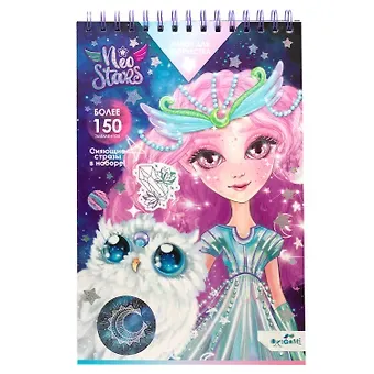 Neo Stars – это космический и творческий мир волшебства! Отправляйся в бесконечный космический мир творчества и волшебства вместе с девочками Neo Stars из блокнота для творчества MAXI с наклейками и стразами для лица. Этот активити-бук предлагает широкий спектр для творчества: придумывай и воплощай свои космические дизайны или раскрашивай готовые эскизы, а также украшай их стикерами. Готовые шедевры можно положить в фирменный конвертик Neo stars и подарить друзьям. Или спрятать туда секретик. В наборе есть стразы для лица, наклей их на лицо и стань маленькой звездочкой! Фантазируй и придумывай свои увлекательные истории! В наборе более 150 элементов!