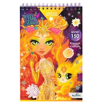 В наборе: листы со стикерами, листы для раскрашивания, листы с эскизами, листы для записи, стразы.
