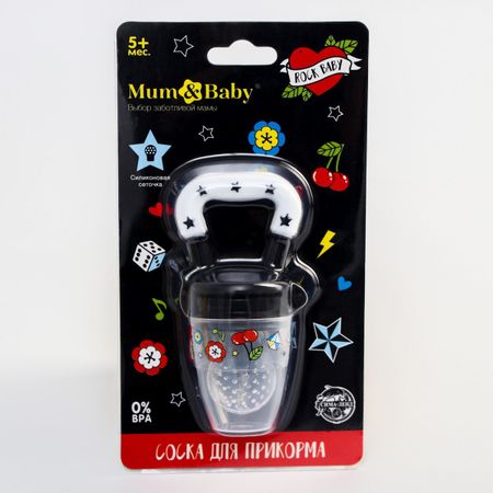 Ниблер для прикорма Rock baby, с силиконовой сеточкой, M&B. Изделие для прикорма (ниблер) пригодится в период, когда ребенок переходит с кашки и молока на твердую пищу. Приспособление разовьет у крохи жевательные навыки. Также предмет будет безопасно массировать десны во время прорезывания зубов. Положите кусочки продуктов внутрь, зафиксируйте на пластиковом основании. Чадо будет учиться кушать самостоятельно без риска подавиться. <b> Основные преимущества</b> <ul> <li> Подходит для всех видов овощей, фруктов и ягод, вареного мяса и рыбы.</li> <li> Тканевая насадка не влияет на вкусовые ощущения. </li> <li> Сетка надежно фиксируется. </li> <li> Ручка имеет удобную форму.</li> <li> Защитный колпачок обеспечивает необходимую гигиеничность. </li> <li> Яркий дизайн повысит интерес крохи к процессу кормления.</li> <li> Изделие не содержит бисфенола А.</li> </ul>