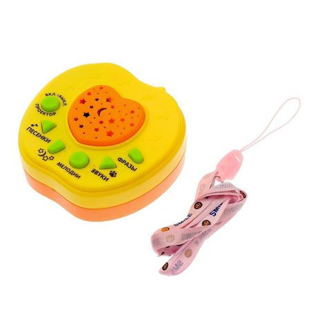 Ночник музыкальный «Веселые зверята», игрушка-проектор, цвет желтый. Музыкальная игрушка «Веселые зверята» поможет ребенку быстрее заснуть и развлечет, если он заскучает. Устройство воспроизводит 2 колыбельные, 2 мелодии, 2 песенки и 3 забавные фразы. А также звуки животных: кошка (мяу), петух (кукареку), собака (лай), коза (бее..), крова ( муу..). Названия животных не проговаривает,только звуки животных. Проектор передает качественное изображение картинок, а мягкий приглушенный свет ночника подарит сладкий сон вашему малышу. Благодаря магнитной поверхности устройство можно установить на любой предмет. Отдельная кнопка для проектора позволит вам выключить его и оставить только режим ночника. Игрушка выполнена из прочных материалов, безопасных для ребенка. Развивает зрение, слух, мелкую моторику.