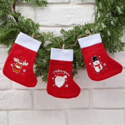 Носки для подарков новогодние «Веселого Нового года!», 3 мешка, веревка, 3 прищепки. Новогодние носки для подарка подарят вам волшебную атмосферу тепла и уюта, а также сделают ваш праздник ярким и запоминающимся! Новогодний носок — лучший аксессуар, благодаря которому подарок на Новый год станет незабываемым, как для ребенка, так и для взрослого. Дети с трепетом ждут новогодние сюрпризы именно в эти носочки! Новогодний носок — элемент декора и украшения дома, мешок для подарка отлично впишется в любой интерьер. Данный элемент идеально использовать в качестве упаковки подарка. Мешочек имеет петельку, благодаря которой носок можно повесить у камина, на новогоднюю елку.