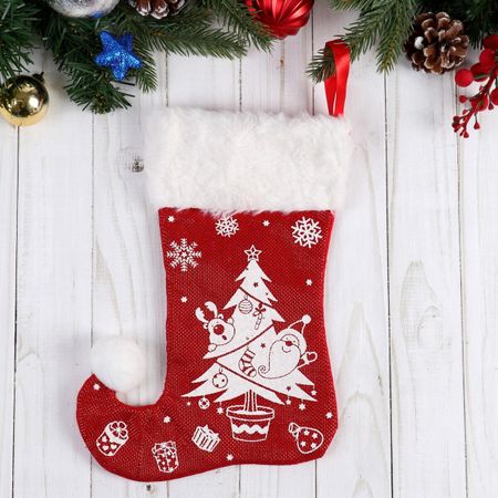 Носок для подарков «Волшебство. Ёлочка с подарками», 18×25 см, красный. Праздник, который ждет под елкой. Новогодний носок «Ёлочка с подарками» — это текстильный сапожок красного цвета с рисунком, размером 18×25 см. Изделие выполнено в стиле новогоднего барокко и скандинавского уюта, дополненное мотивом елки с подарками. Это не просто мешочек для сюрприза — он становится частью зимней атмосферы, которую можно повесить на елку или поставить как декор на праздничный стол. <ul> <li> <strong> Красный — цвет зимнего торжества:</strong> Цвет усиливает ощущение тепла и радости, идеально сочетаясь с классическим новогодним оформлением и современным декором.</li> <li> <strong> Рисунок елки с подарками — отсылка к предпраздничной подготовке:</strong> Узор напоминает о том, как мы сами были детьми, украшали дерево и верили в чудо, которое приносит Новый год.</li> <li> <strong> Текстиль — мягкость и надежность:</strong> Материал хорошо держит форму, сохраняет вид после нескольких сезонов использования и остается приятным на ощупь.</li> <li> <strong> Форма сапожка — связь с добрыми традициями:</strong> Это не просто носок — он напоминает о временах, когда подарки находили у окна, а не под елкой, и каждый уголок дома был полон ожидания чуда.</li> <li> <strong> Стиль — от классики до фьюжн:</strong> Декор легко вписывается в разные интерьерные решения: будь то строгое барокко или лаконичный скандинавский минимализм.</li> </ul> <strong> Праздник живет в деталях:</strong> Этот носок — не просто место для подарка, а часть целой истории, которую хочется беречь год за годом. Он подходит тем, кто помнит детские предновогодние ночи, но ценит современный стиль. «Ёлочка с подарками» — мягкий знак: Новый год начинается там, где его ждут с любовью и верой в волшебство.