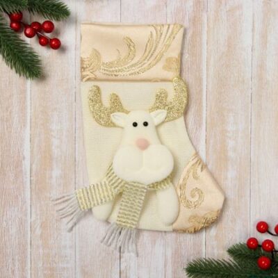Главная » Товары для детей Носок для подарков Просмотров 4 Носок для подарков «Олень ажурный» 17.5×25.5 см, бежевый/золотистый. Зимнее волшебство