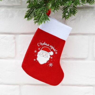 Носок для подарков «С Новым Годом!», 11 х 16 см. Новогодние носки для подарка подарят вам волшебную атмосферу тепла и уюта, а также сделают ваш праздник ярким и запоминающимся! Новогодний носок — лучший аксессуар, благодаря которому подарок на Новый год станет незабываемым, как для ребенка, так и для взрослого. Дети с трепетом ждут новогодние сюрпризы именно в эти носочки! Новогодний носок — элемент декора и украшения дома, мешок для подарка отлично впишется в любой интерьер. Данный элемент идеально использовать в качестве упаковки подарка. Мешочек имеет петельку, благодаря которой носок можно повесить у камина, на новогоднюю елку.