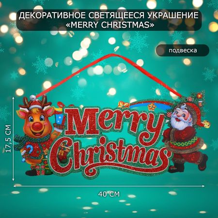 Главная » Товары для детей Новогоднее светящиеся украшение настенное Просмотров 4 Новогоднее светящиеся украшение настенное «Merry Christmas», подвеска, 17,5х40 см. No brand