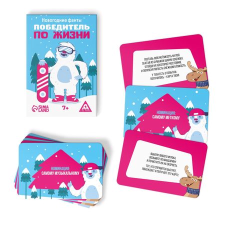 Новогодние фанты «Новый год: Победитель по жизни», 20 карт, 7+. <b> Это веселая игра, которая поможет отлично провести вечер с друзьями или в кругу семьи.</b> Игроки по очереди тянут карту и выполняют указанное задание. Если его удалось выполнить, игрок объявляется победителем в номинации и забирает карту себе. Состав: -20 карт <b> Играйте и веселитесь вместе с ЛАС ИГРАС!</b>