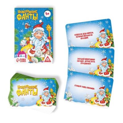 Новогодние фанты для всей семьи, 20 карт, 5+. <b> Секрет отличного праздника</b> Запах мандаринов и еловых веток, ожидание сказки и чуда… Такой праздник бывает лишь раз в году! Встречайте его так, чтобы улыбка не сходила с ваших лиц, а набор новогодних фантов вам в этом поможет! <b> Вся семья в сборе? </b> Тогда можно начинать! Пусть каждый из присутствующих вытягивает карточку из колоды, зачитывает задание, написанное на ней, и скорее его выполняет. Все задания очень добрые и смешные – они отлично подойдут для этого волшебного праздника в кругу семьи! <b> Отличное настроение гарантировано! </b>