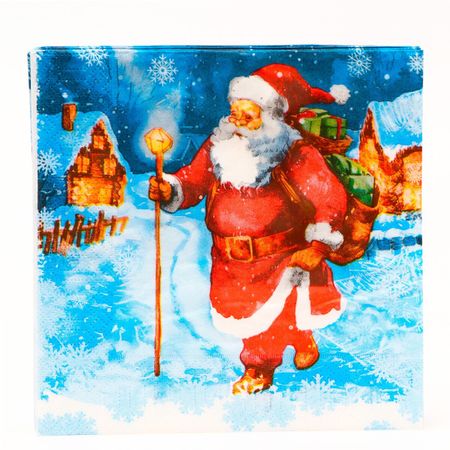 Новогодние салфетки бумажные «Дед Мороз» 3 слоя, 33×33 см, 20 шт.. Новогодние бумажные салфетки с рисунком "Дед мороз" — это отличное украшение для вашего праздничного новогоднего стола. Идеально подойдут как для сервировки, так и в качестве декора и украшения как в домашних условиях, так и на больших праздничных мероприятиях. Салфетки с уникальным рисунком будут хорошим подарком для родных и близких. Данные салфетки можно использовать так же для декупажа и коллажей. Состав 100% целлюлоза. Размер салфетки в развернутом виде 33х33 см. в сложенном виде 16,5х16,5 см.