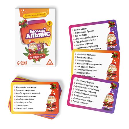 Новогодний набор игр «Новый год: Party box. Играй и объясняй. 6 в 1», по 20 карт в каждой игре, 7+. <b> Играйте и объясняйте вместе с Party Box</b> В этой коробке вас ждет 6 мини-версий популярных игр на объяснение слов, а также детективная игра «Скажи да или нет». С их помощью можно научиться понимать друг друга без слов, а также повеселиться в кругу друзей и семьи. <b> Какие игры ждут вас внутри?</b> <ul> <li> «Веселый альянс»,</li> <li> «Скажи да или нет»,</li> <li> «КрокоБилл»,</li> <li> «Кто Я?»,</li> <li> «Позитивиум»,</li> <li> «Попробуй объясни».</li> </ul> Каждая настолка упакована в индивидуальную коробочку и содержит правила и 19 карт с заданиями и словами. Перед началом игры необходимо отделить карточки друг от друга. <b> 6 игр в одной коробке!</b>