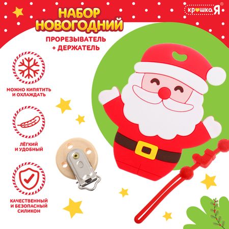 Новогодний прорезыватель для зубов «Дед Мороз», с держателем, цвет красный. Новогодний прорезыватель для зубов «Дед Мороз» разработан специально для малышей от 0 месяцев. Игрушка поможет облегчить боль при прорезывании зубов, а также потренировать моторику, тактильные ощущения и воображение. <b> Как использовать</b> <ul> <li> Промойте прорезыватель перед использованием в теплой или горячей воде с мылом, затем ополосните питьевой водой. Можно прокипятить игрушку при температуре 100 °C в течение 2–3 минут.</li> <li> Перед тем, как дать ребенку прорезыватель, можно поместить его на 10–15 минут в холодильник.</li> <li> Продезинфицируйте изделие после использования.</li> <li> Не используйте прорезыватель при наличии механических повреждений.</li> </ul> Особенности прорезывателя<ul> <li> Изделие изготовлено из безопасного гипоаллергенного материала — пищевого силикона. Не содержит вредных красителей, не имеет запаха и вкуса.</li> <li> Рельефная поверхность эффективно массирует десны и зубки.</li> <li> Игрушку можно кипятить и охлаждать в холодильнике.</li> <li> Прорезыватель можно прикрепить к одежде малыша. В комплекте есть силиконовый держатель с крепким фиксатором, который не чувствуется на теле.</li> <li> Размеры изделия: 8 × 0,8 × 7,4 см.</li> </ul>