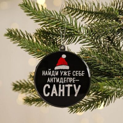 Новогодний шар елочный «Найди уже себе антидепресанту», на Новый год, d = 7,5 см. Новогоднее елочное украшение в виде шара станет лучшим украшением вашей новогодней елки, венка или интерьера. Яркое сочетание цветов, неповторимый дизайн подарит Вам радостные эмоции и погрузит в сказочную атмосферу новогоднего праздника.