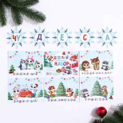 Новогодняя игра «Детский Новогодний набор». В нашем наборе для проведения праздника вы найдете все необходимое, чтобы встретить новый год весело и незабываемо. В наборе вы найдете: — сценарий с подсказками (13 х 9,5 см.); — 5 чудесных игр; — 5 снежинок (8,3 х 9 см.); — то самое новогоднее настроение! <b> Возврастное ограничение 3+</b>