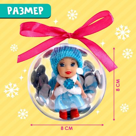 Новогодняя игрушка в шаре «Волшебного Нового года!». Игрушка в шаре «Волшебного Нового года!» — это очаровательный подарок, который создаст праздничное настроение. Яркая куколка внутри прозрачного шара станет прекрасным украшением новогодней елки или детской комнаты. <b> Особенности</b> <ul> <li> Нежная куколка высотой 8 см находится внутри прозрачного шара размером 8 × 8 см и станет прекрасным компаньоном для игр. Ее шапочка надежно прикреплена к голове.</li> <li> Яркий дизайн и праздничная тематика создадут атмосферу волшебства и сделают игрушку отличным подарком на Новый год.</li> <li> Игрушку можно использовать как елочное украшение или как отдельную игрушку.</li> <li> Шар легко открывается, что позволяет достать куколку и играть с ней. После игры куколку можно снова поместить в шар.</li> <li> Игрушка упакована в красивую подарочную коробку с бантиком, что делает ее еще более привлекательной.</li> </ul> Игрушка в шаре «Волшебного Нового года!» станет отличным подарком для детей любого возраста. Игрушка в шаре станет отличным дополнением к любой коллекции игрушек и подарит ребенку радость и положительные эмоции.